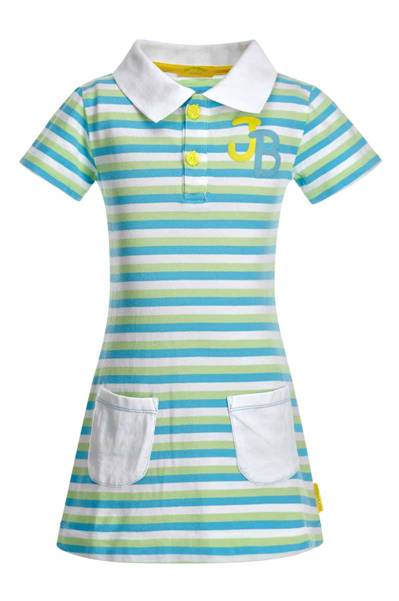 Классическое платье-поло из высококачественного трикотажа "пике" с вязаным воротником. Модель дополнена накладными карманами и застежкой контрастного цвета с отделкой оригинальной тесьмой. Украшена полимерным принтом. Модель будет стильной вещью в гардеробе девочки.