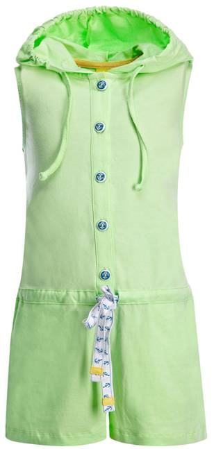 95% хлопок, 5% эластан. Стильный полукомбенизон из мягкого высококачественного трикотажа актуального в этом сезоне цвета. Модель с капюшоном, который защитит Вашего ребенка от сильного солнца или ветра и удобными карманами в боковых швах. Модель свободного покроя, по талии ширина изделия регулируется за счет кулиски и вставленной в нее декоративной тесьмы. Переднюю часть украшает застежка-планка с пуговицами.