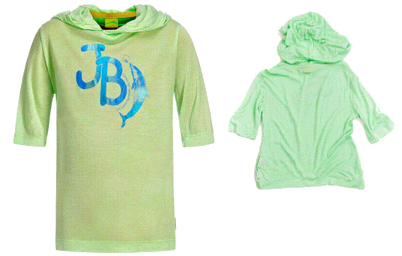 95% вискоза, 5% эластан. Стильная футболка из тонкого вискозного трикотажа свободного покроя с капюшоном и рукавами длиной до локтя. Модель защитит ребенка как от сильного солнца, так и в прохладный день от ветра. Выполнена в актуальной цветовой гамме. Отшита с учетом передовых технологий с укреплением по горловине и плечевым швам. Модель украшена полимерным принтом с эффектом "фольги".